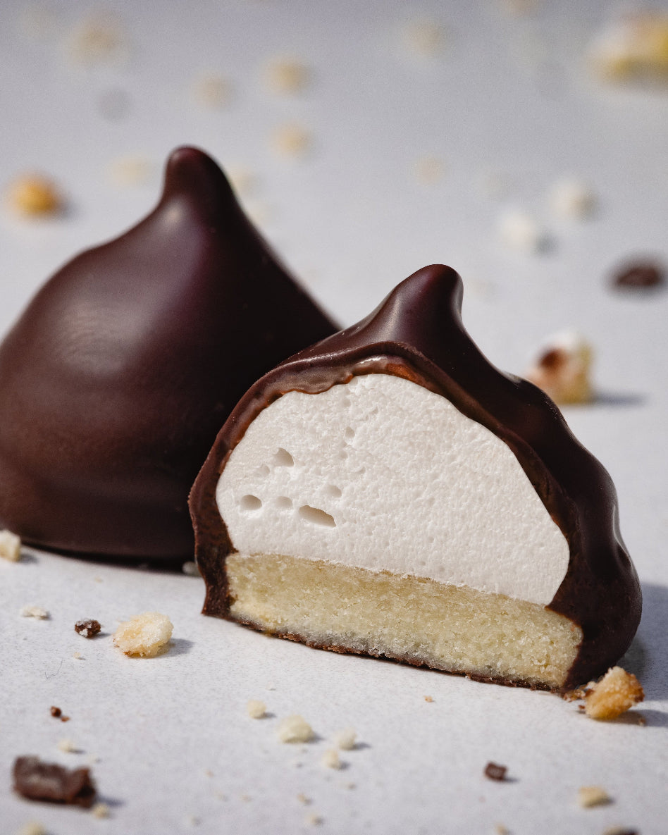 The popular Israeli treat is a chocolate coated dome of whipped meringue/marshmallow on a biscuit base.